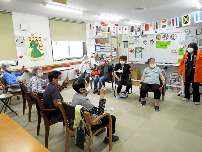 が、2回戦も白チームの圧勝でした。2個のお手玉を一回でガコに入れる利用者様がいる白チームが、3回戦とも圧勝でした!