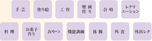 ●機能訓練指導員が自立支援や生活の向上を目指した多様なプログラムをご提案。転倒予防・筋力アップのための体操や認知症予防などの活動をご用意しています。